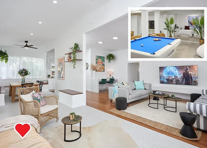 Die 3-Zimmer-Villa The Queenslander! Complete Entertainer - Huge - Stylish - Games - Full Level Pool Room - Smokehouse - Secure Parking - Yard #New! Gold Coast befindet sich in rund 7 km Entfernung von das Wachsfigurenkabinett und bietet einen Jacuzzi. Die Villa in Gold Coast liegt in einer Entfernung von ca. 10 Autominuten vom Jachthafen Mariner's Cove und verfügt über eine Terrasse mit Blick auf die Straße.